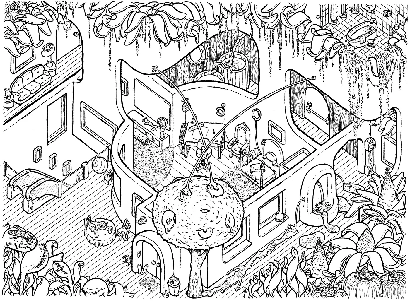 Cross Cross Frosting Squirt on Donut Tree - in ink Progress Dec 27 Written By scott teplin 12" x 15", india ink pen & inkROOMSdonutkickstarter scott teplin http://www.teplin.com