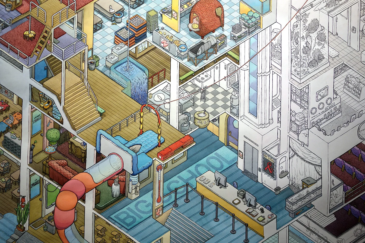 BIG SCHOOL watercolor progress Progress Sep 21 Written By scott teplin View fullsize View fullsize a whole page for BS progress is HERE big schoolWATERCOLORpen & inkROOMS scott teplin http://www.teplin.com