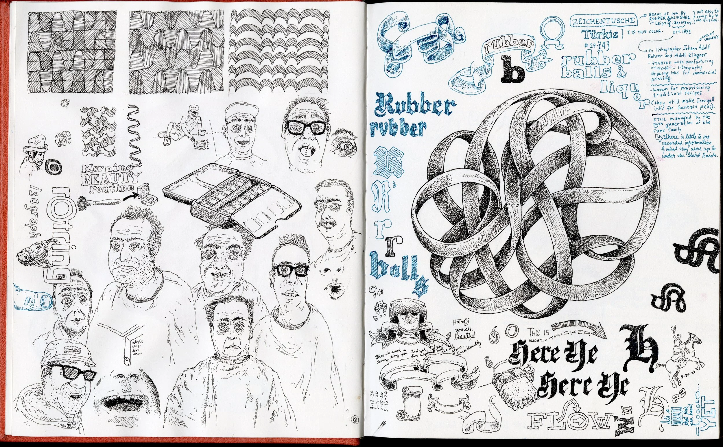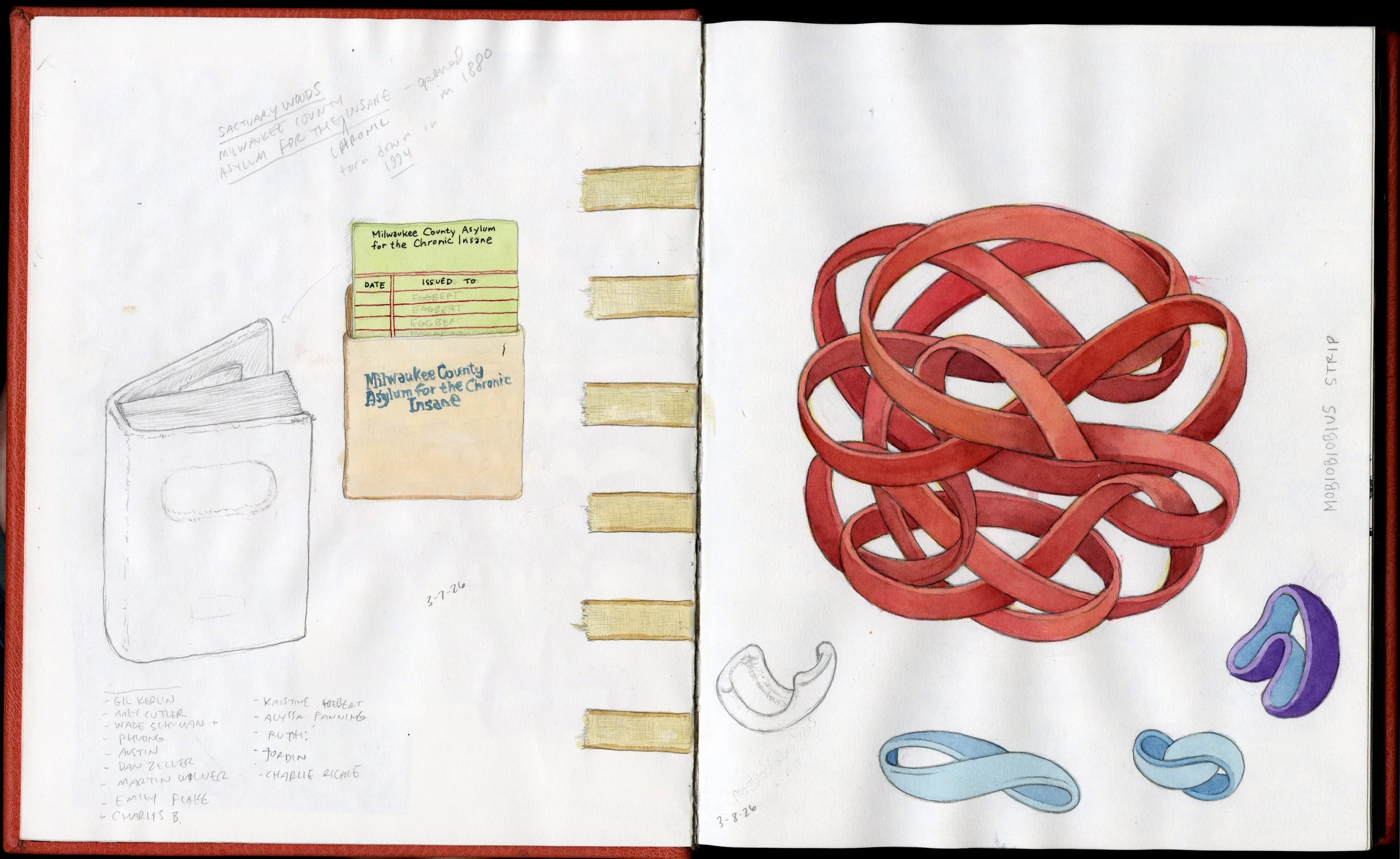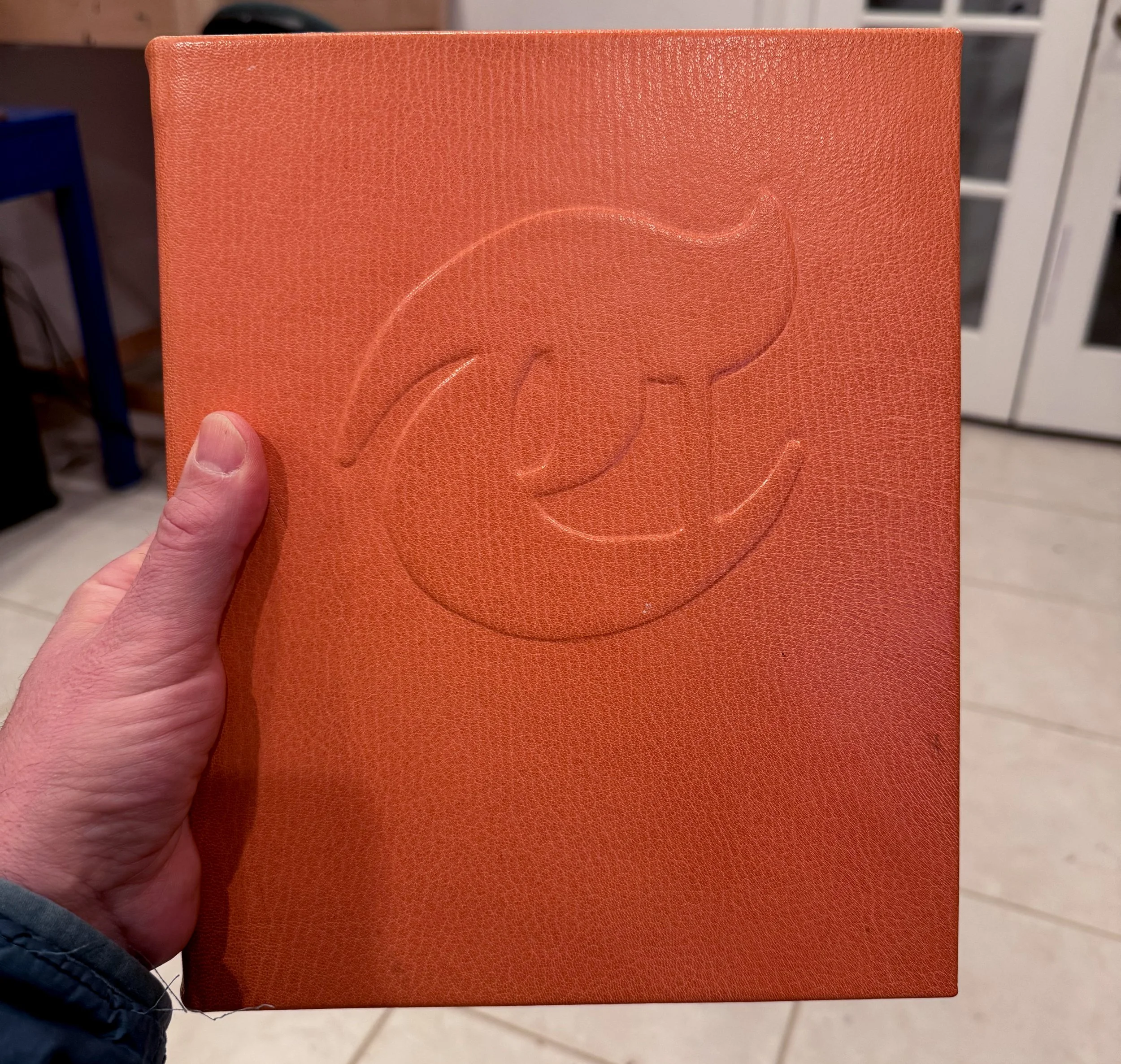 I bound this one a little bit larger that usual (8.5” x 10.5” closed) because I didn’t have as much paper to fold and sew into signatures as I thought I did when I began the book. It fits on the scanner perfectly but it’ll take a little getting used to working in since it’s weight and size make it a bit unwieldy to draw in while sitting on the couch (95% of work in my sketchbooks occurs there).