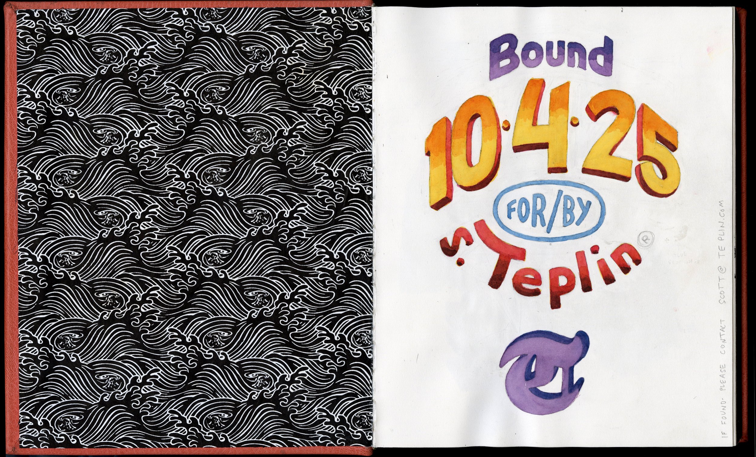 Linen tape bound with Arches 90 lb hot press watercolor paper cased in a vegetable tanned Nigerian goatskin cover.