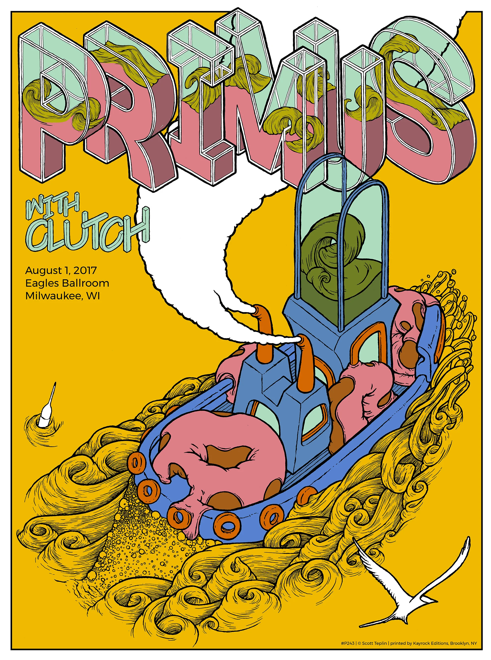 I saw PRIMUS at this very venue in Milwaukee back in the early 90's so I was very excited that I was asked to make a poster for a show at the same place! There are a few left and can be bought here. Ships out Aug. 9, 2017.