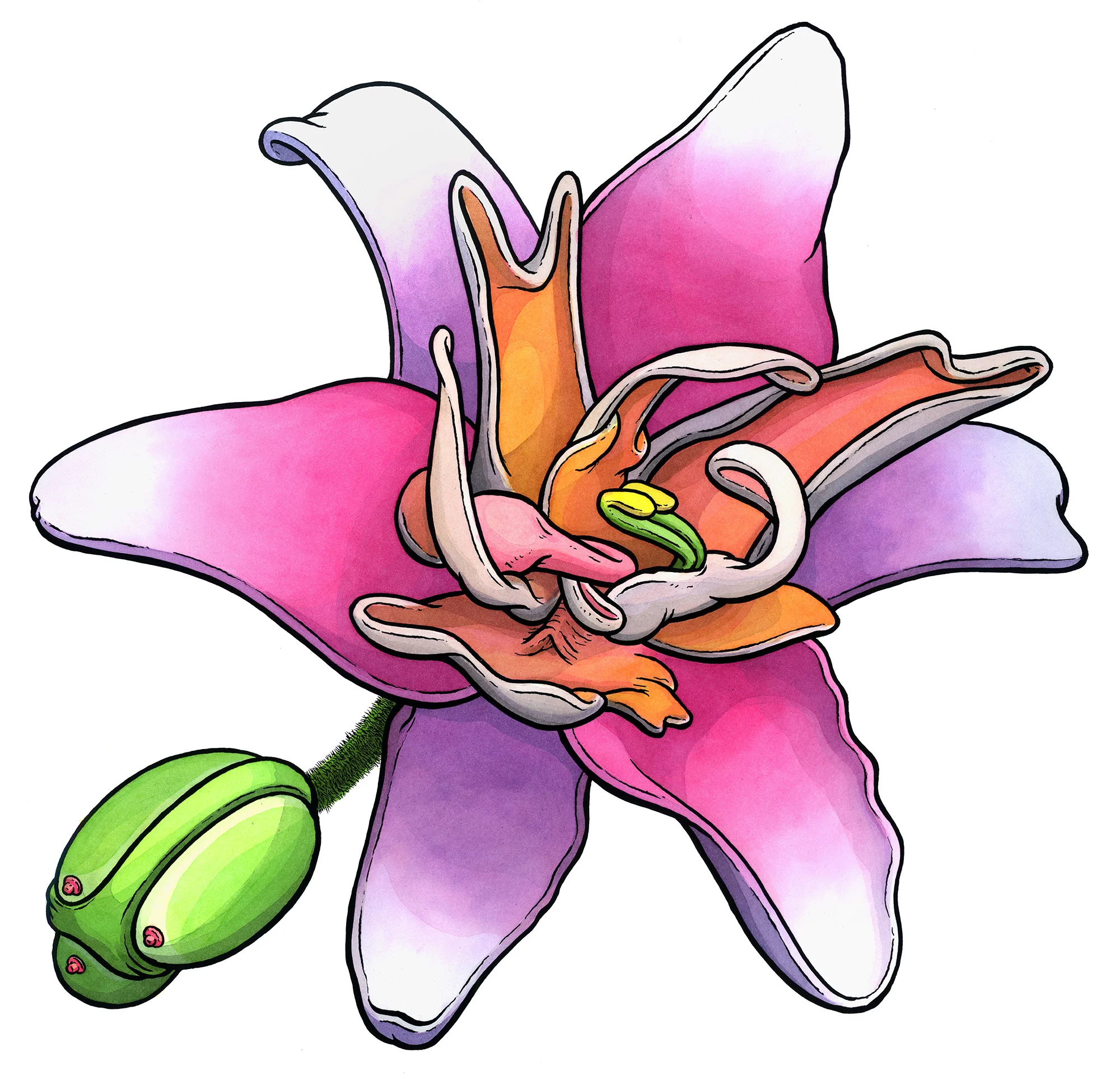 "Hedly's Lilly," 22" x 30" pen & ink and watercolor on paper. 2017. Click for more like this. Inspired by: