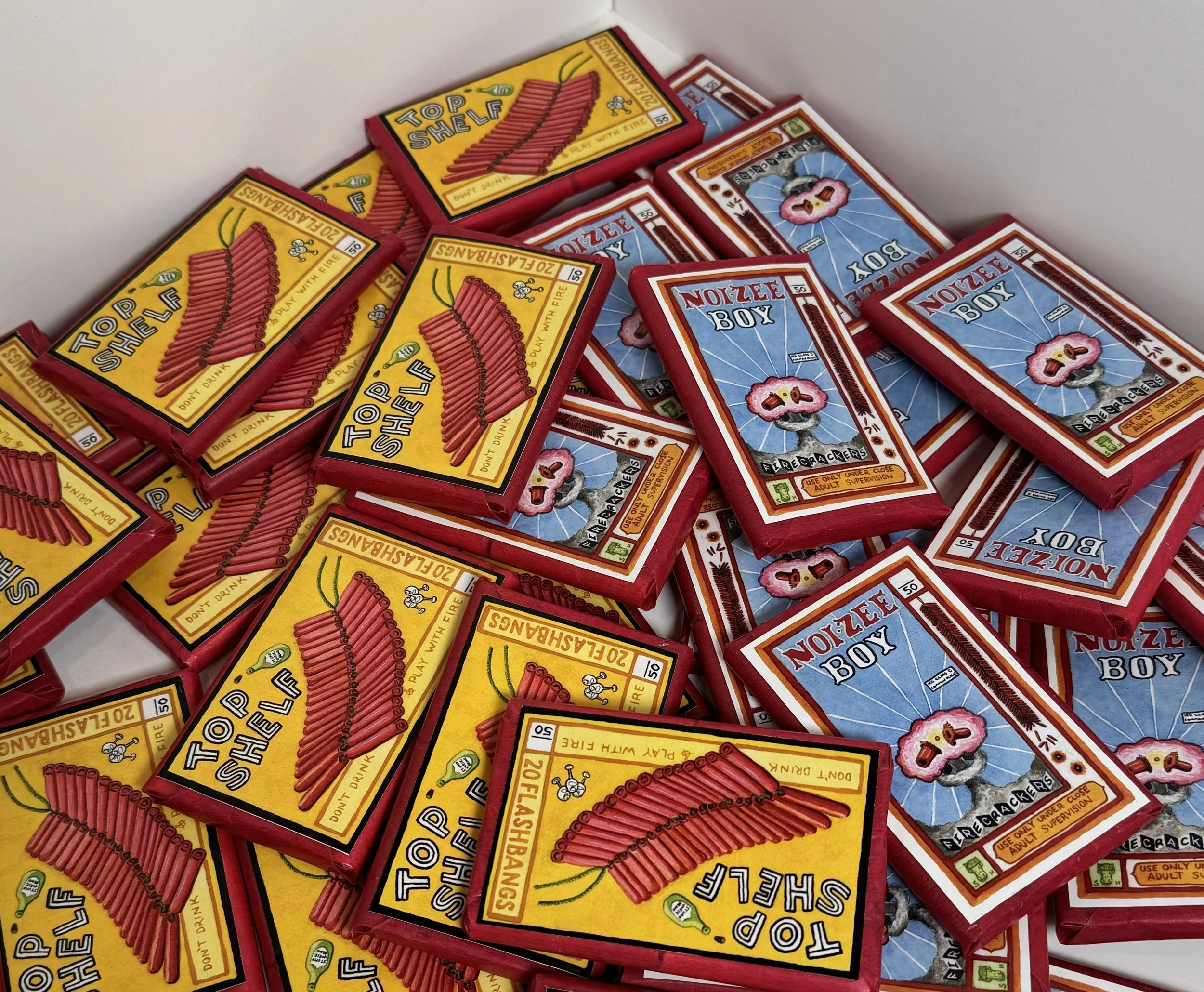 The unlit firework embodies potential energy: ephemeral, exquisitely designed, and inherently unpredictable. As a child, I was drawn not only to their unique, sometimes amateurish label design but to the visceral, secret thrill of possession. Collecting them and holding this dangerous object in my room, unbeknownst to my parents, offered a tangible, intoxicating sense of control and responsibility over a potent force. This intimate fascination with the unignited state was the starting point for my artistic methodology. My early artistic practice was a literal deconstruction. Driven by the limited ways to "play," I would secretly disassemble my collection, combining existing powders and cardboard tubes to create novel, imaginative charges. This impulse to dissect and reconstruct a predefined potential led me to the core questions that now drive my work: How do we navigate the delicate territory between childhood wonder and the edges of danger? What transforms a hazard into an opportunity for profound discovery? These backyard experiments were not just rebellion; they were foundational inquiries. Email me for purchase inquiries.