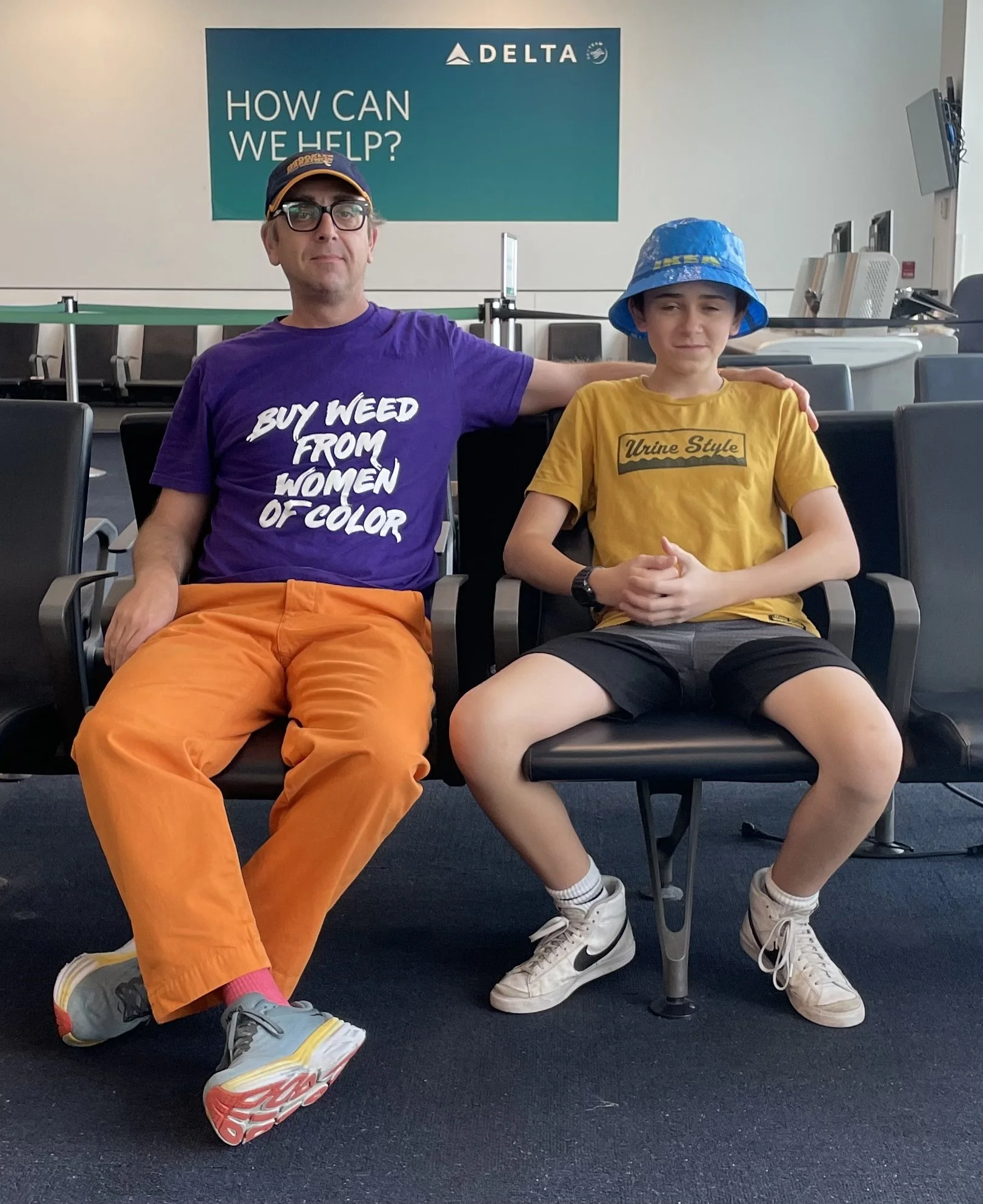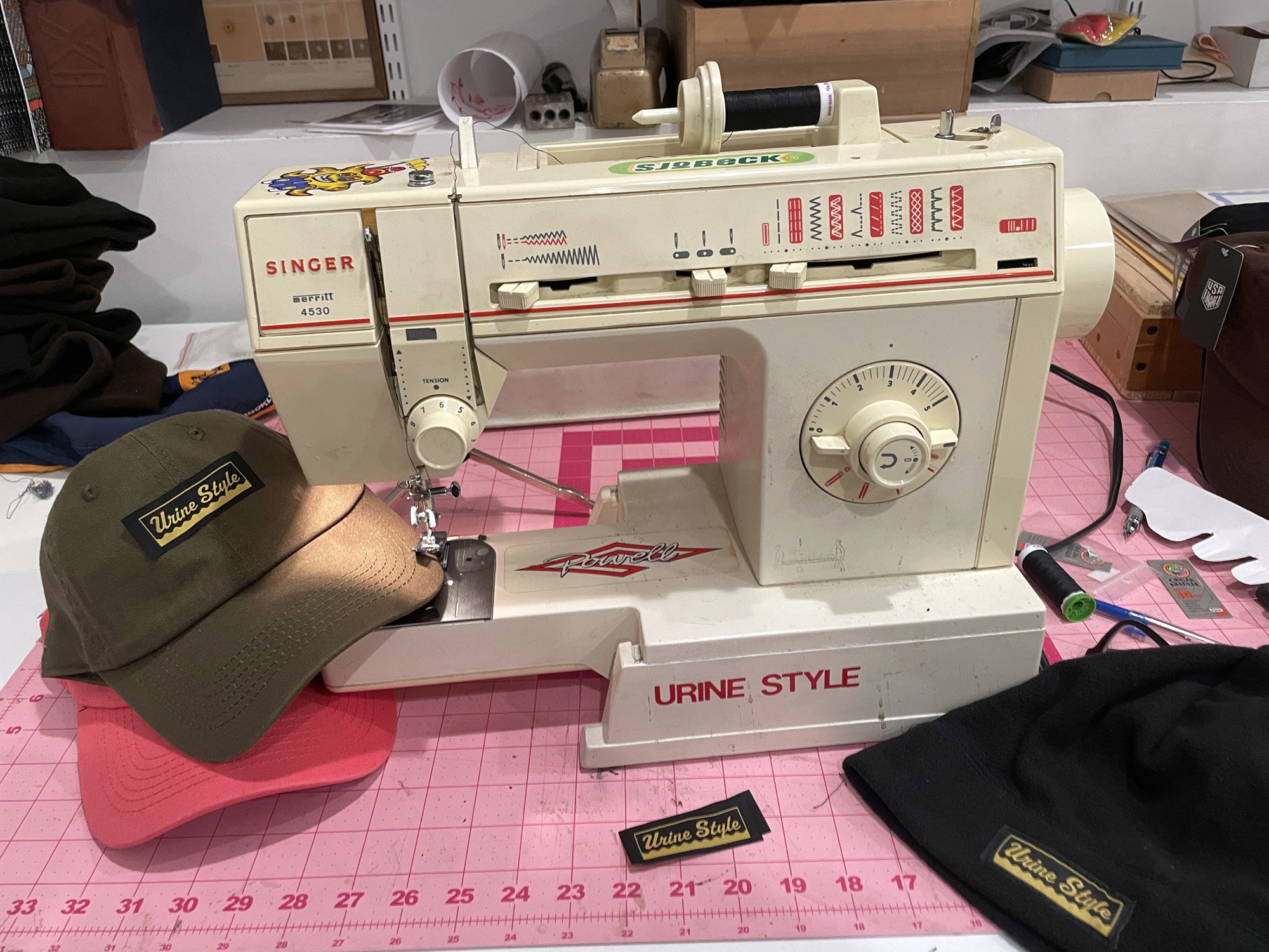 I couldn’t resist. My mom’s sewing machine sat quietly in our hallway closet, waiting for purpose. One afternoon, I threaded that needle, long before I even considered being an artist (I actually skipped out on art classes in high school. Back then, I was honestly afraid people would see it as a sign I wasn’t smart). I dubbed my own fledgling line “Urine Style”- once again taking a page from Ari’s creative playbook.